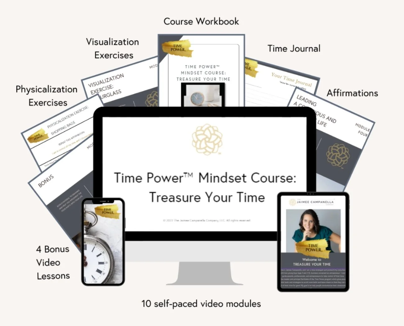 A self-paced course that helps her reset her relationship with time so she can move from overwhelm to calm, clarity, and control.